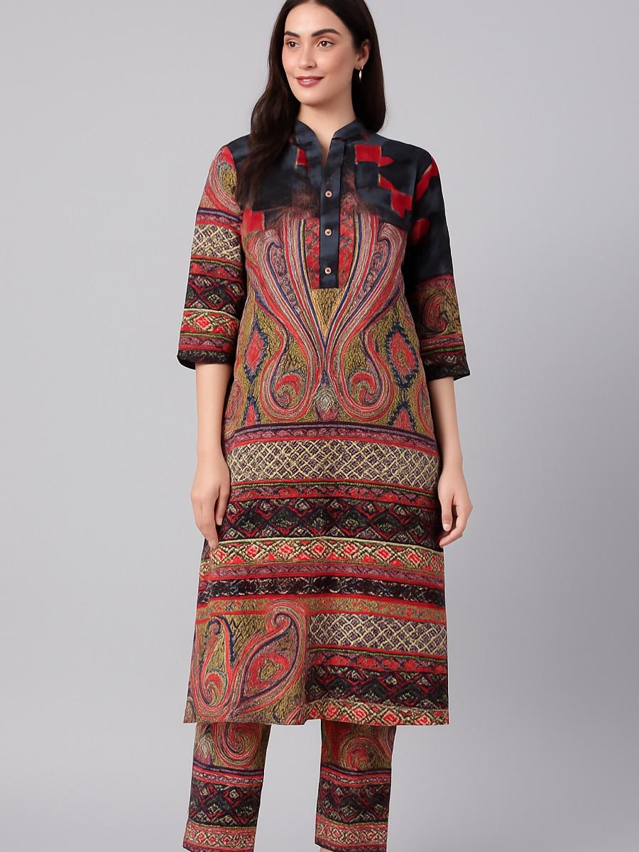 Women's Ethnic Printed Kurta Set | Cotton Blend Kurti with Pants